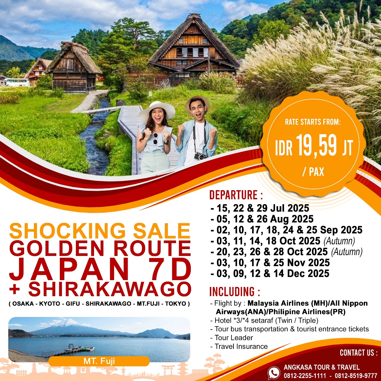 7D SHOCKING SALE GOLDEN ROUTE JAPAN + SHIRAKAWAGO : BY MH
