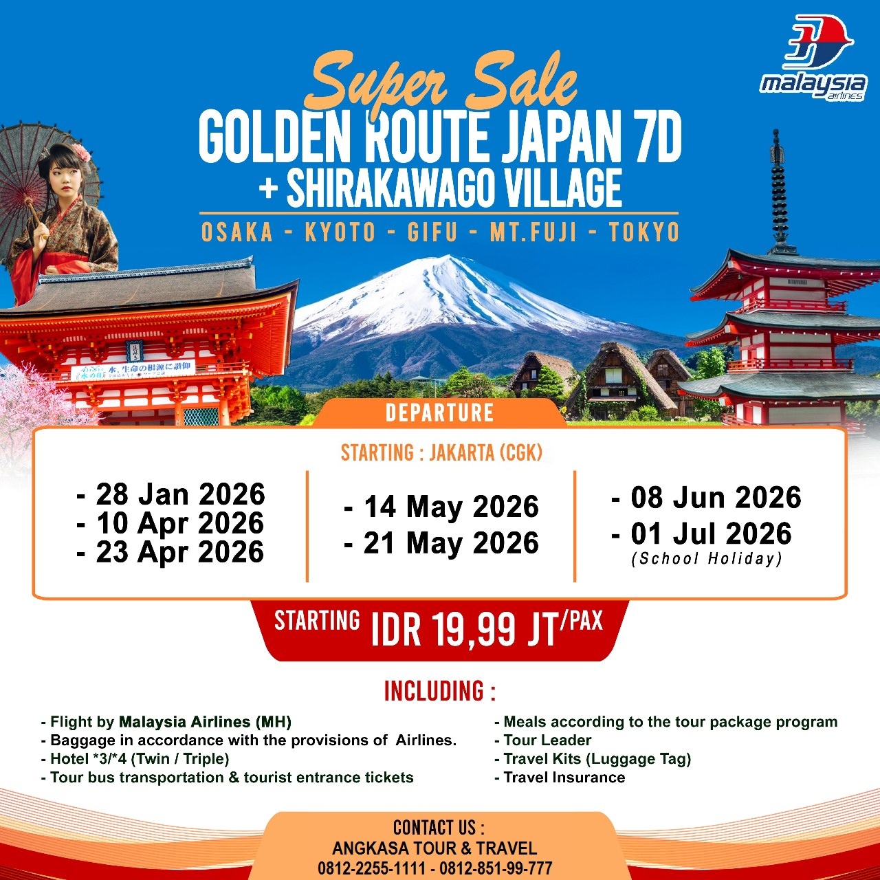 • Visa Jepang: Rp.800.000/pax (Domisili Jakarta)