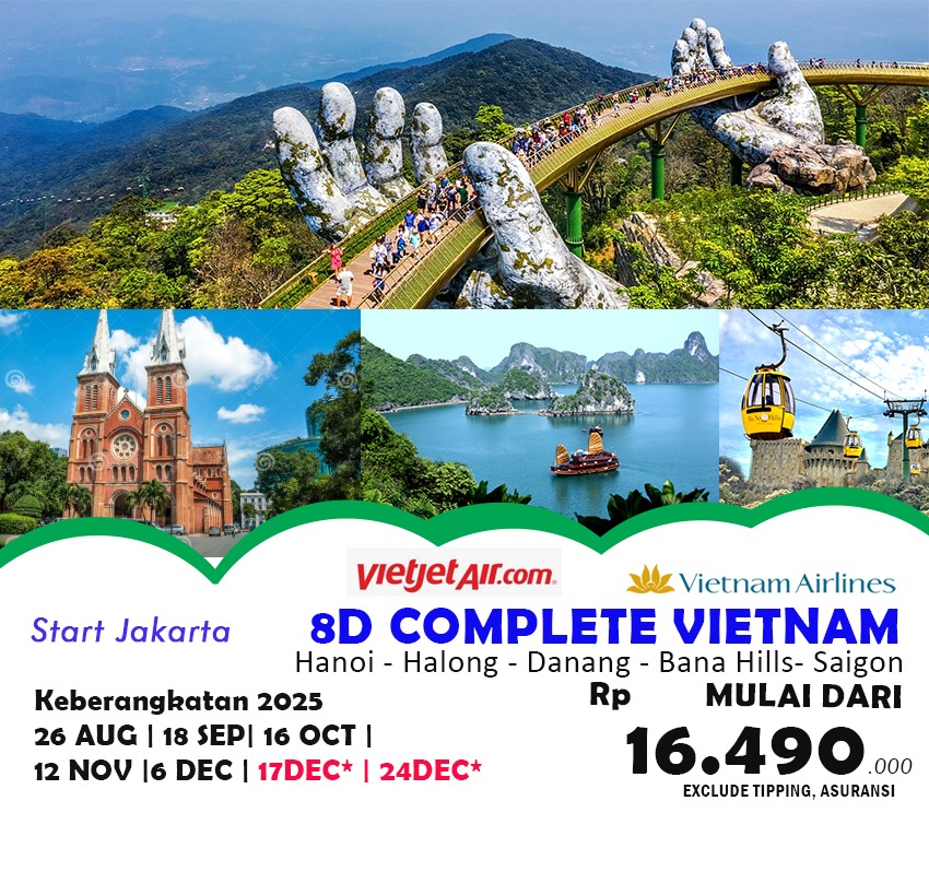 Setelah makan pagi dihotel. Anda akan menuju Ba Na Hill dan disana anda akan diajak menaiki Cable Car untuk menikmati pemandangan sekitar yang akan memanjakan mata anda. Anda juga akan diajak mengunjungi Le Jardin D’Amour Flower & Golden Bridge, French Village. Perjalanan dilanjutkan kembali menuju Da Nang dan mengunjungi Cam Thanh Water Coconut Village dimana anda bisa menikmati pengalaman menaiki perahu