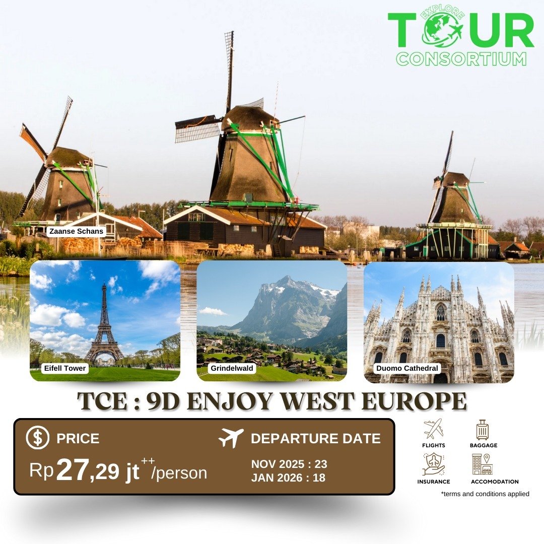 Pagi ini Anda tiba di Amsterdam. Lalu Anda akan diajak city tour di Zaanse Scans untuk melihat kincir angin
