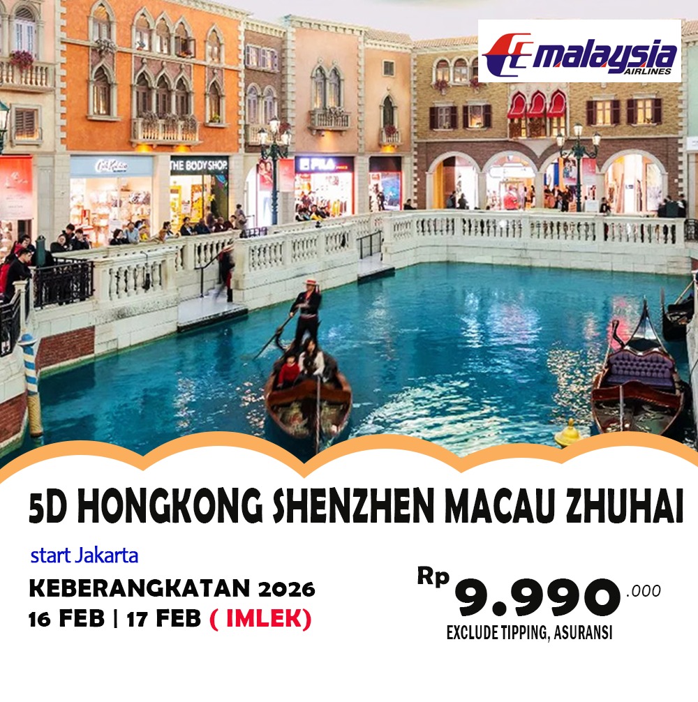 Sarapan pagi di hotel. Kita akan melakukan perjalanan menuju Macau, setibanya di Macau kita akan mengunjungi reruntuhan St Paul yang memiliki daya tarik arsitektur yang unik dari sisa saia gereja Katolik yang dibangun pada abad ke-16. Setelahnya kita akan mengunjungi A-ma Temple yang merupakan area kuil dengan arsitektur yang menarik, area ini juga masuk ke dalam salah satu situs warisan dunia UNESCO bersamaan dengan Ruins of St Paul. Kemudian kita akan mengunjungi Venetian Resort yang merupakan area resort dengan bernuansa kota Venice di Italia. Kemudian kita akan diantarkan ke toko Souvenir untuk bisa