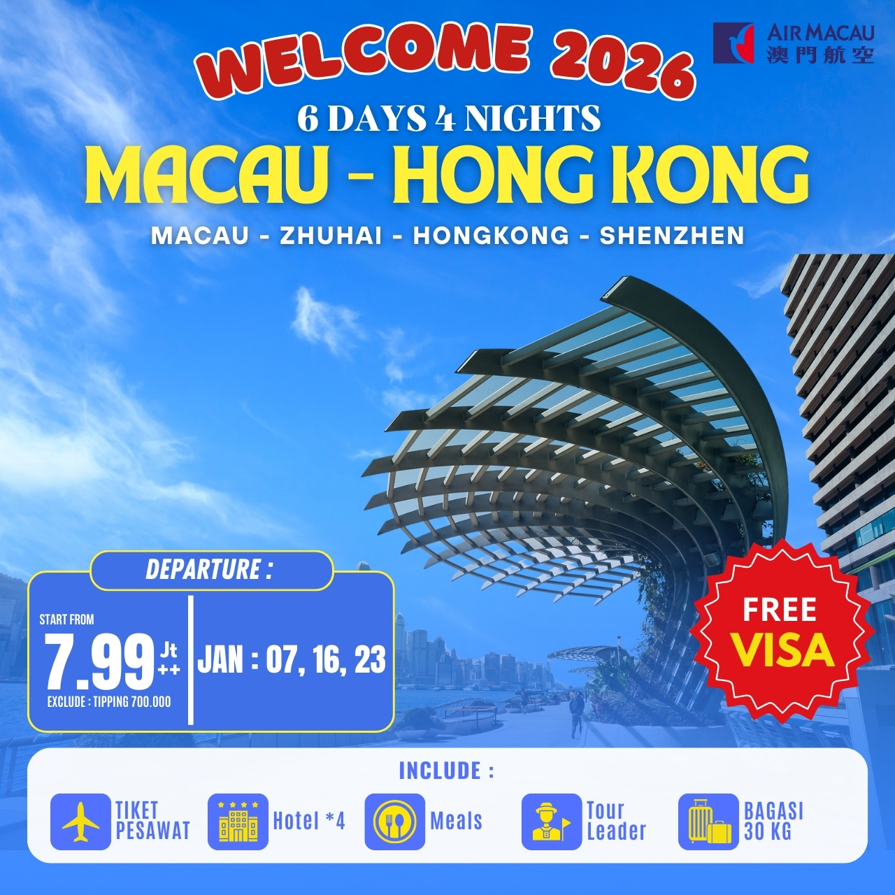 5/6D4N HONGKONG SHENZHEN ZHUHAI MACAU 07 JAN 2026 : BY NX